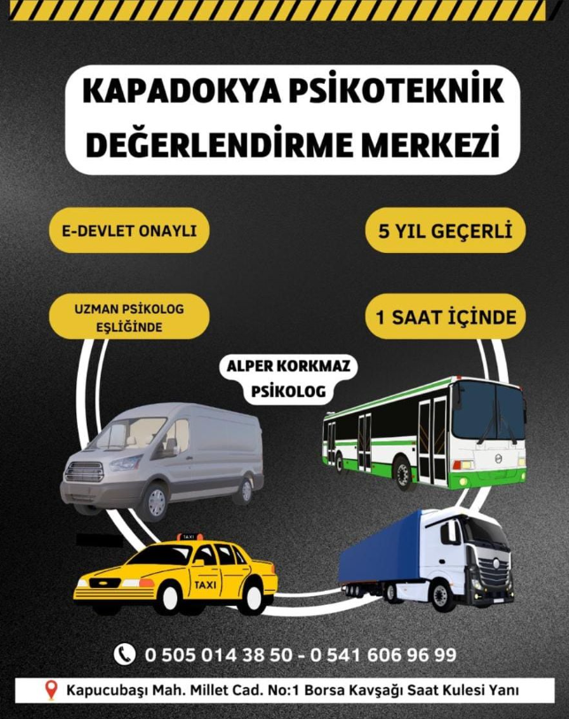Kapadokya Psikoteknik, profesyonel sürücü psikoteknik değerlendirme ve eğitim hizmetleri sunar
